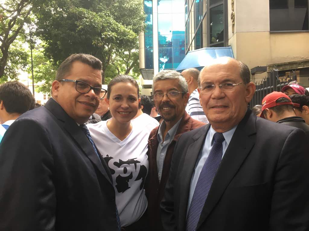 Machado consignó el documento luego de realizar una pequeña marcha hasta la sede del organismo en el este de Caracas, acompañada de decenas de políticos y representantes de la sociedad civil que forman parte de la recién conformada alianza "Soy Venezuela", un movimiento creado para "restituir la República" en el país.